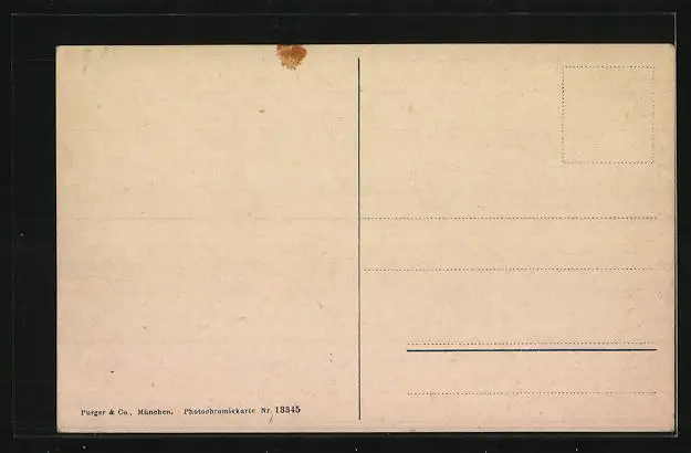 Personenbezogene Daten auf der Rückseite der Karte wurden durch blauen Textmarker unkenntlich gemacht. Die blauen Stellen sind auf die Vorderseite durchgeweicht und wirken sich negativ auf das Postkartenfoto aus