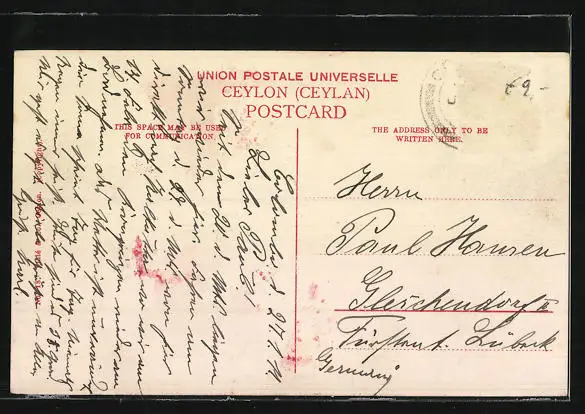 alte Ansichtskarte, gelaufen, Briefmarke entfernt, guter Zustand