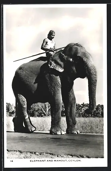 AK Ceylon / Sri Lanka, Elephant and Mahoud, Elefant und Reiter