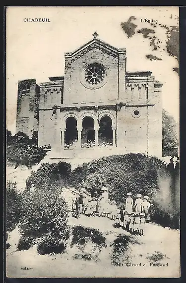 AK Chabeuil, L`Église avec des visiteurs devant les marches
