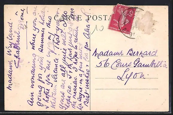 alte Ansichtskarte, gelaufen, Briefmarke entfernt, Bugspur li. oben, guter Zustand