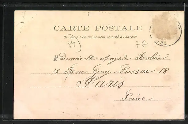 gelaufen 1904, Briefmarke entfernt, leicht fleckig, sonst guter Zustand