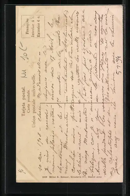 Personenbezogene Daten auf der Rückseite der Karte wurden durch blauen Textmarker unkenntlich gemacht. Die blauen Stellen sind auf die Vorderseite durchgeweicht und wirken sich negativ auf das Postkartenfoto aus