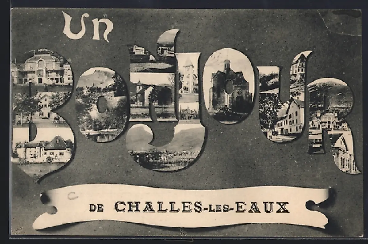 AK Challes-les-Eaux, Un Bonjour de Challes-les-Eaux avec vues intégrées dans les lettres
