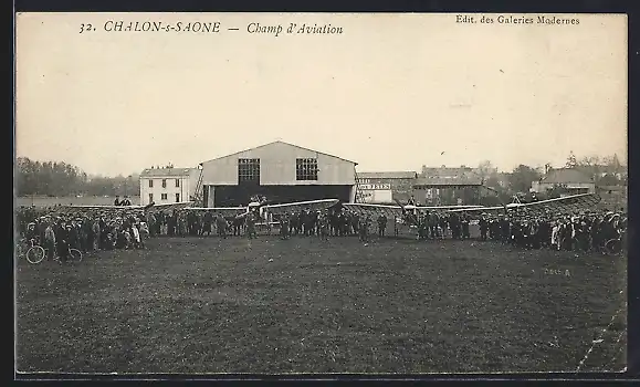 AK Chalon-sur-Saône, Champ d`Aviation avec foule rassemblée autour d`un avion