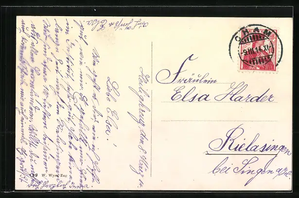 gelaufen 1914, Stempelspur, guter Zustand
