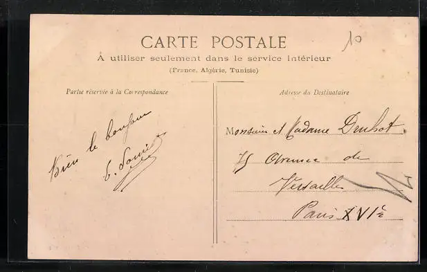Personenbezogene Daten auf der Rückseite der Karte wurden durch blauen Textmarker unkenntlich gemacht. Die blauen Stellen sind auf die Vorderseite durchgeweicht und wirken sich negativ auf das Postkartenfoto aus