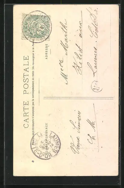 gelaufen 1908, leichter Eckknick rechts unten, sonst guter Zustand