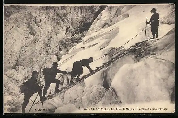 AK Chamonix, Les Grands Mulets, Traversée d`une crevasse