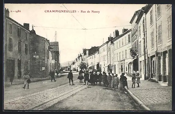 AK Champigneulles, Rue de Nancy avec enfants jouant dans la rue