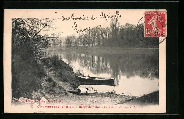 AK Champrosay, Bords de Seine - Port Saint-Victor et Lavour