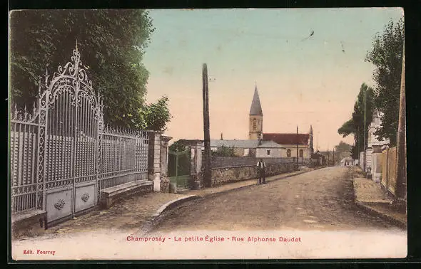 AK Champrosay, la petite Église, Rue Alphonse Daudet