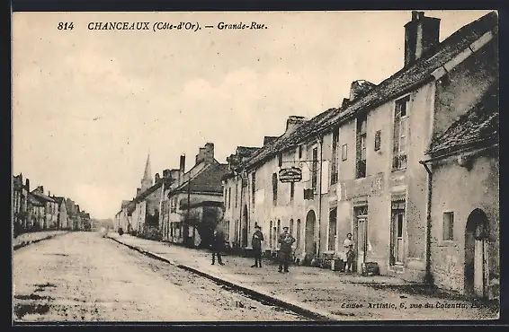 AK Chanceaux, Grande-Rue avec bâtiments et habitants