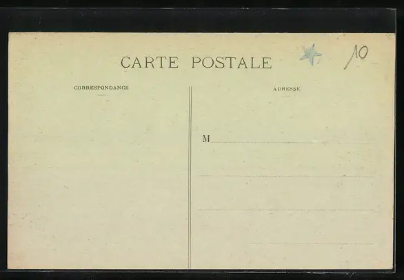 Personenbezogene Daten auf der Rückseite der Karte wurden durch blauen Textmarker unkenntlich gemacht. Die blauen Stellen sind auf die Vorderseite durchgeweicht und wirken sich negativ auf das Postkartenfoto aus