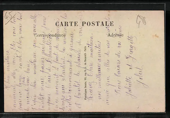 Personenbezogene Daten auf der Rückseite der Karte wurden durch blauen Textmarker unkenntlich gemacht. Die blauen Stellen sind auf die Vorderseite durchgeweicht und wirken sich negativ auf das Postkartenfoto aus