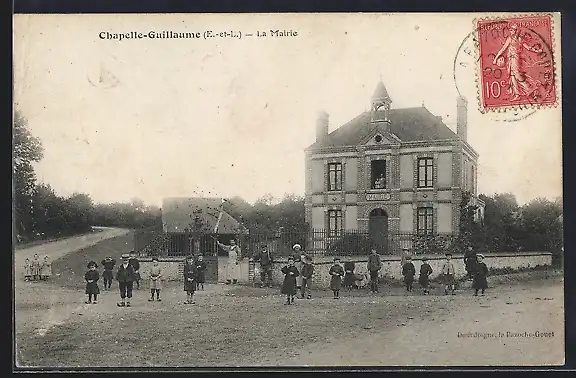AK Chapelle-Guillaume, La Mairie avec enfants devant le bâtiment