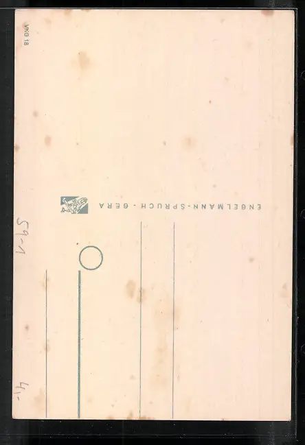 Personenbezogene Daten auf der Rückseite der Karte wurden durch blauen Textmarker unkenntlich gemacht. Die blauen Stellen sind auf die Vorderseite durchgeweicht und wirken sich negativ auf das Postkartenfoto aus