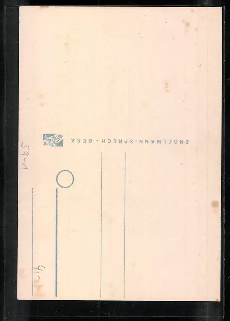 Personenbezogene Daten auf der Rückseite der Karte wurden durch blauen Textmarker unkenntlich gemacht. Die blauen Stellen sind auf die Vorderseite durchgeweicht und wirken sich negativ auf das Postkartenfoto aus