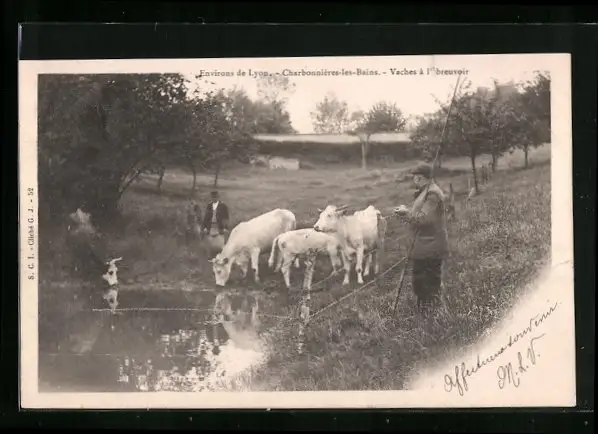 AK Charbonnières-les-Bains, Vaches à l`Abreuvoir