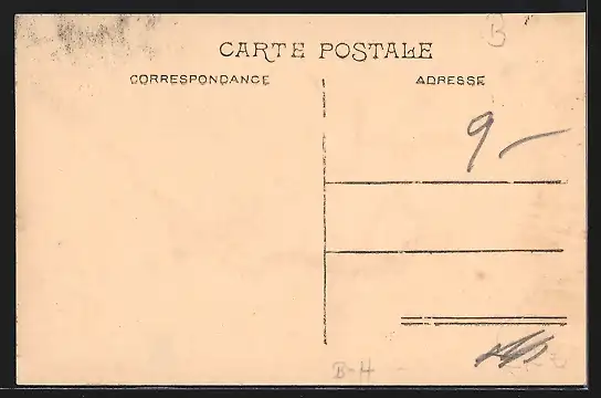 Personenbezogene Daten auf der Rückseite der Karte wurden durch blauen Textmarker unkenntlich gemacht. Die blauen Stellen sind auf die Vorderseite durchgeweicht und wirken sich negativ auf das Postkartenfoto aus