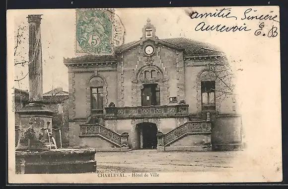 AK Charleval, Hôtel de Ville avec colonne en premier plan