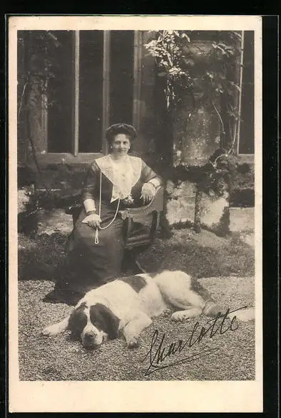 AK Charlotte von Württemberg mit ihrem Bernhardiner