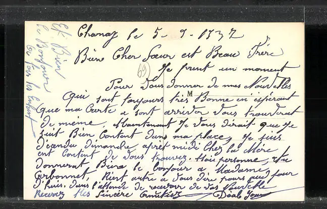 ungelaufen, Rückseite beschrieben 1937, guter Zustand
