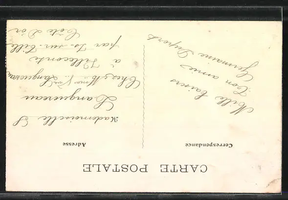 Personenbezogene Daten auf der Rückseite der Karte wurden durch blauen Textmarker unkenntlich gemacht. Die blauen Stellen sind auf die Vorderseite durchgeweicht und wirken sich negativ auf das Postkartenfoto aus