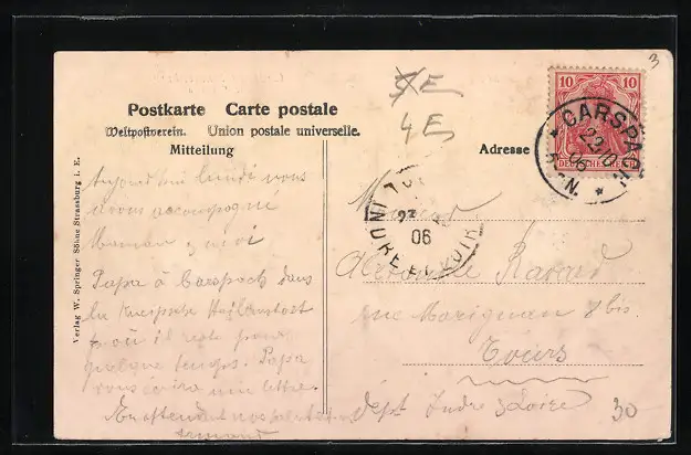 alte Ansichtskarte, gelaufen 1906, Eckknick unten re., guter Zustand
