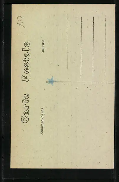 Personenbezogene Daten auf der Rückseite der Karte wurden durch blauen Textmarker unkenntlich gemacht. Die blauen Stellen sind auf die Vorderseite durchgeweicht und wirken sich negativ auf das Postkartenfoto aus
