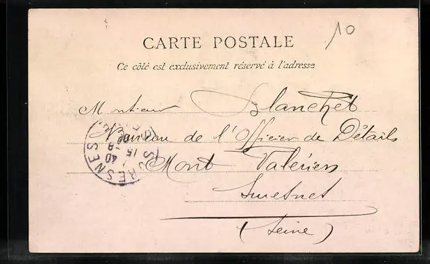 Personenbezogene Daten auf der Rückseite der Karte wurden durch blauen Textmarker unkenntlich gemacht. Die blauen Stellen sind auf die Vorderseite durchgeweicht und wirken sich negativ auf das Postkartenfoto aus