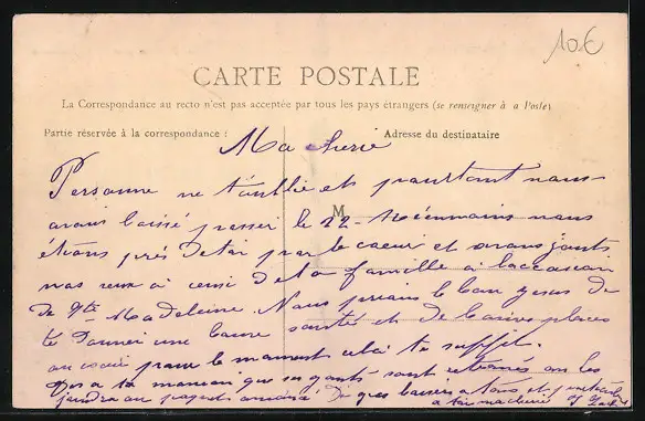 Personenbezogene Daten auf der Rückseite der Karte wurden durch blauen Textmarker unkenntlich gemacht. Die blauen Stellen sind auf die Vorderseite durchgeweicht und wirken sich negativ auf das Postkartenfoto aus