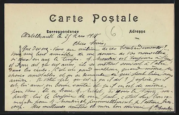 Personenbezogene Daten auf der Rückseite der Karte wurden durch blauen Textmarker unkenntlich gemacht. Die blauen Stellen sind auf die Vorderseite durchgeweicht und wirken sich negativ auf das Postkartenfoto aus