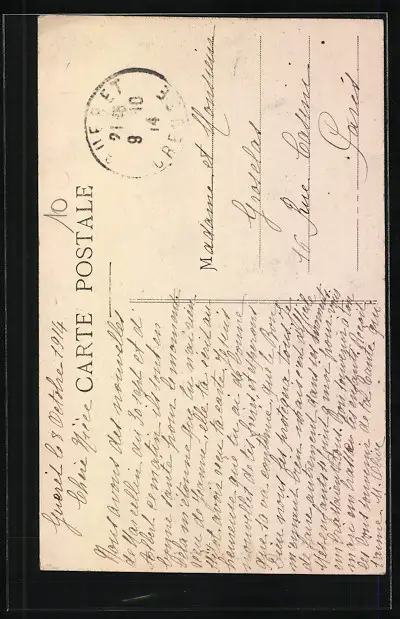 gelaufen 1914, Briefmarke entfernt, guter Zustand