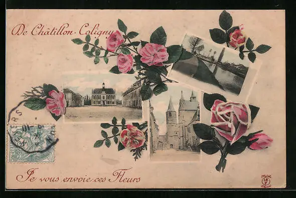 AK Châtillon-Coligny, Uferpartie, Strassenpartie mit Kirche, Ortspartie