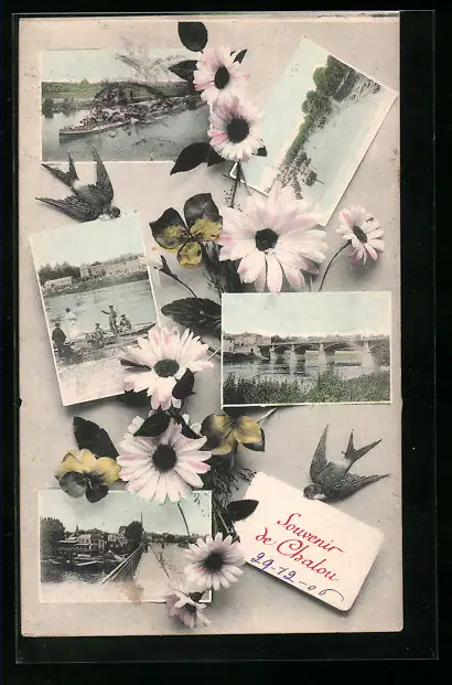 AK Chatou, Brücke, Uferpartie mit Dampfer, Ortspartie