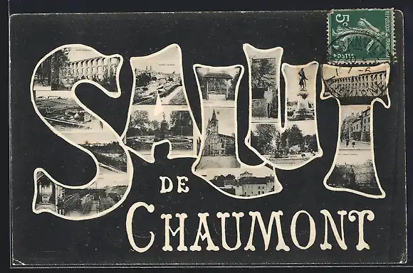 AK Chaumont, Salut de Chaumont avec vues multiples intégrées dans les lettres