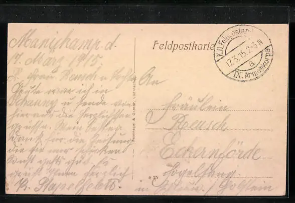 gelaufen als Feldpost 1915, guter Zustand