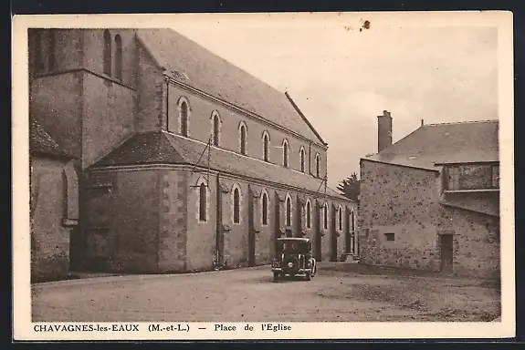 AK Chavagnes-les-Eaux, Place de l`Église avec voiture ancienne