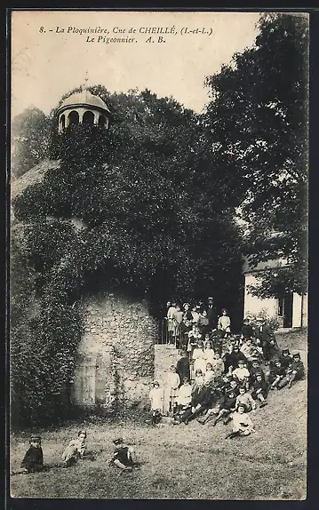 AK Cheillé, Le Pigeonnier avec groupe de personnes devant l`édifice