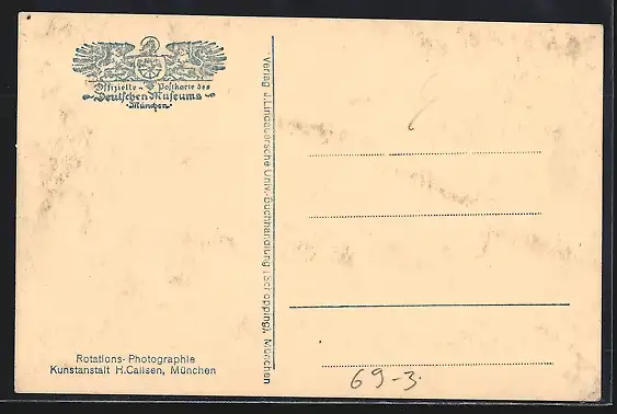 Personenbezogene Daten auf der Rückseite der Karte wurden durch blauen Textmarker unkenntlich gemacht. Die blauen Stellen sind auf die Vorderseite durchgeweicht und wirken sich negativ auf das Postkartenfoto aus