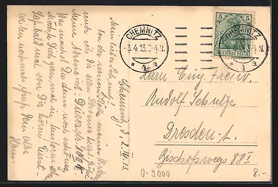 alte Ansichtskarte, gelaufen 1913, guter Zustand