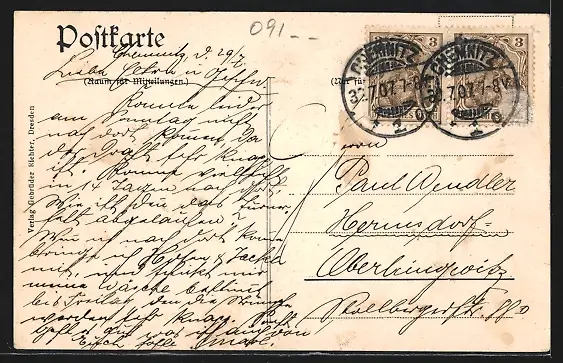 alte Ansichtskarte, gelaufen 1907, Eckknick re. unten, guter Zustand