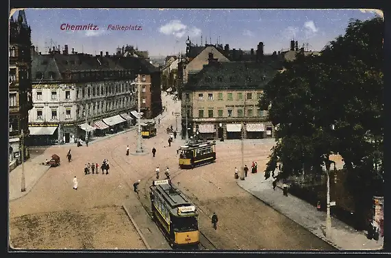 AK Chemnitz, Falkeplatz mit Strassenbahn