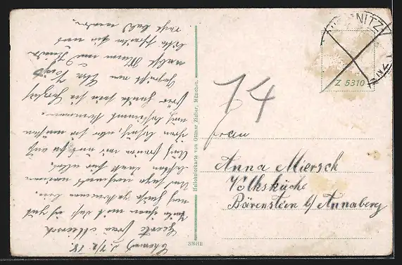 alte Ansichtskarte, gelaufen 1918, Briefmarke entfernt, Ecken bestoßen, guter Zustand