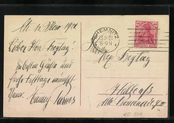 alte Ansichtskarte, gelaufen 1921, guter Zustand