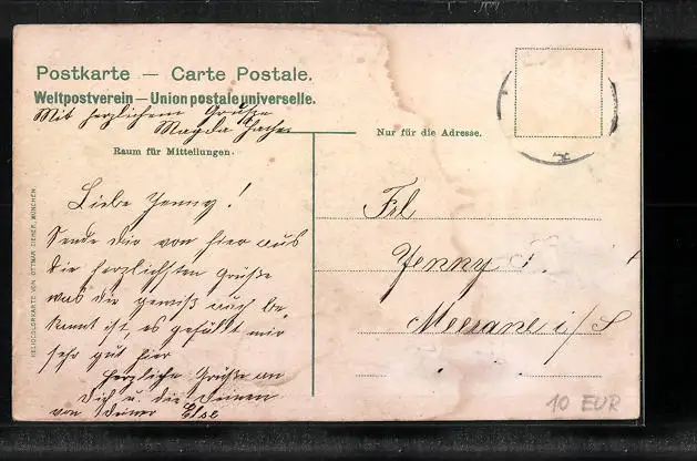 alte Ansichtskarte, gelaufen, Briefmarke entfernt, Eckknick li. oben, guter Zustand