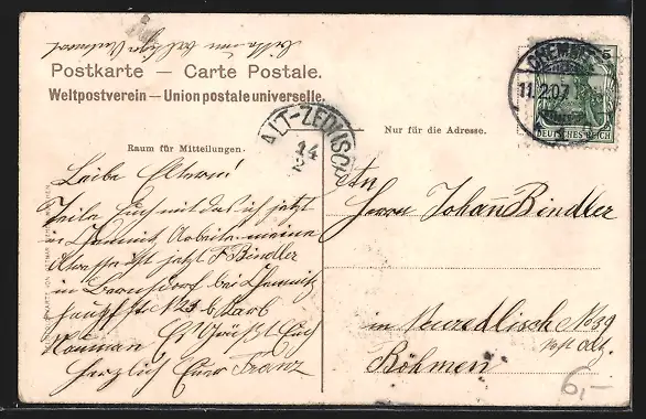 alte Ansichtskarte, gelaufen 1907, Stempelspur, guter Zustand