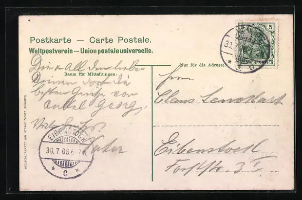 alte Ansichtskarte, gelaufen 1906, Stempelspur, guter Zustand