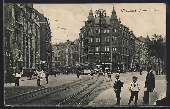 AK Chemnitz, Johannisplatz mit Strassenbahn